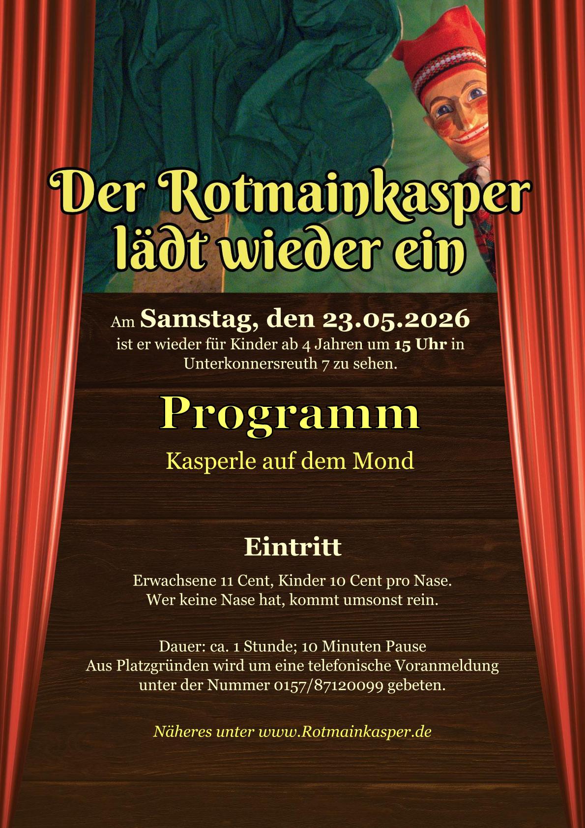 Den Rotmainkasper gibt es seit dem Frühjahr 2024. Die Spieltermine sind in der Regel 6-8 mal pro Jahr mit jeweils wechselndem Programm.